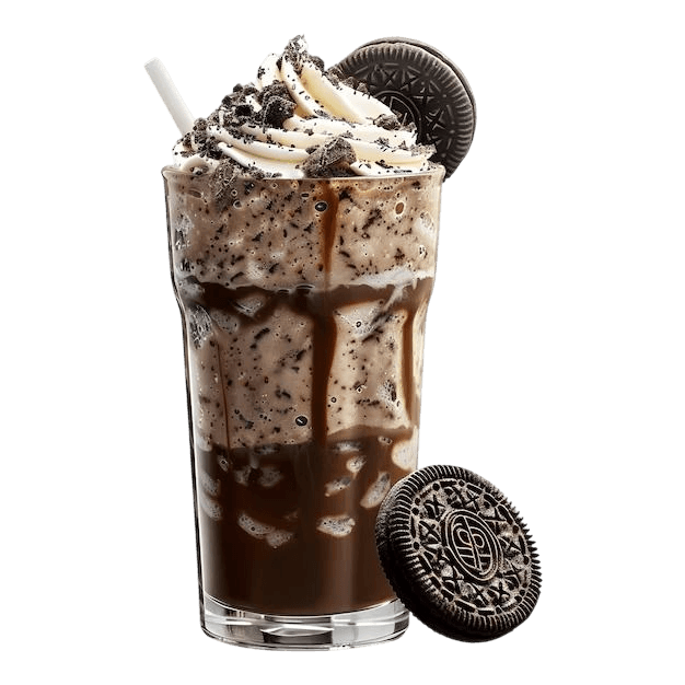 یک شیک غلیظ که از ترکیب بستنی وانیلی، شیر و بیسکویت اورئو